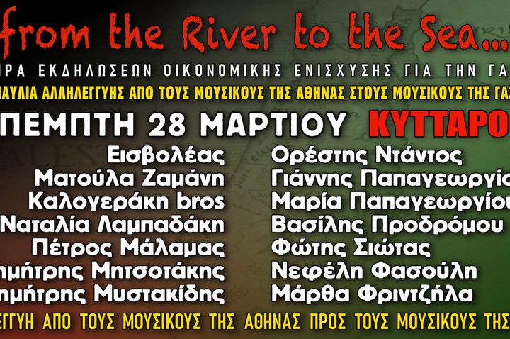 Την Πέμπτη 28 Μαρτίου διοργανώνεται στο Κύτταρο μία συναυλία με την πρωτοβουλία «Αλληλεγγύη από τους μουσικούς της Αθήνας στους μουσικούς της Γάζας». Καθώς οι Ισραηλινοί βομβαρδισμοί συνεχίζονται με αμείωτο ρυθμό εναντίον του λαού της Γάζας με σκοπό την πλήρη εξάλειψη κάθε...