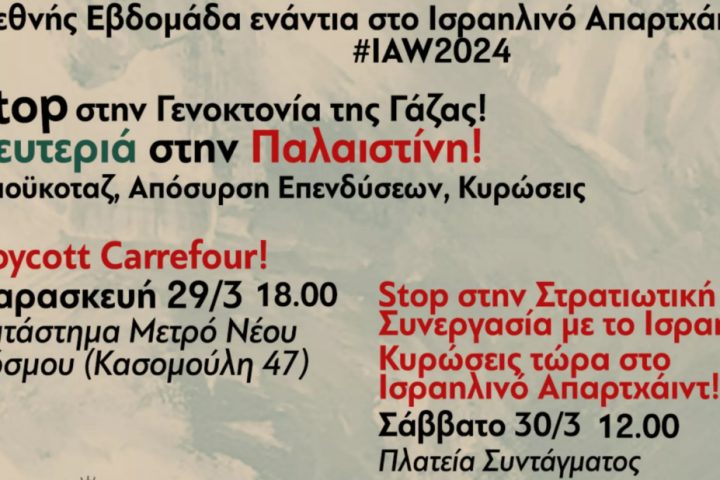 Η Εβδομάδα εναντίον του Ισραηλινού Απαρτχάιντ (IAW) τον Μάρτιο κάθε χρόνου, συνιστά κόμβο παγκόσμιας κινητοποίησης και υποστήριξης στον απελευθερωτικό αγώνα...