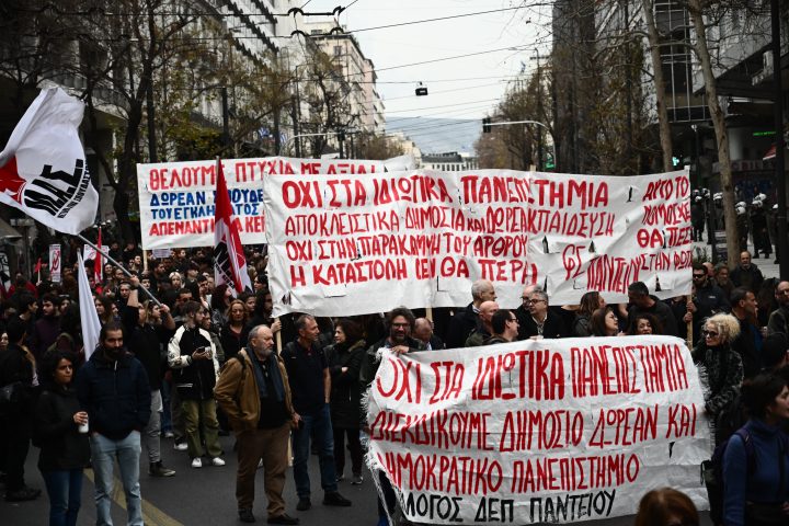 Με τη συμμετοχή φοιτητών, μαθητών, δασκάλων και καθηγητών πραγματοποιήθηκε στο κέντρο της Αθήνας, για όγδοη βδομάδα, πανεκπαιδευτικό συλλαλητήριο κατά του νομοσχεδίου για τα ιδιωτικά πανεπιστήμια. Πλήθος κόσμου συγκεντρώθηκε στα Προπύλαια μετά τις 12 και η πορεία ξεκίνησε λίγο αργότερα με...
